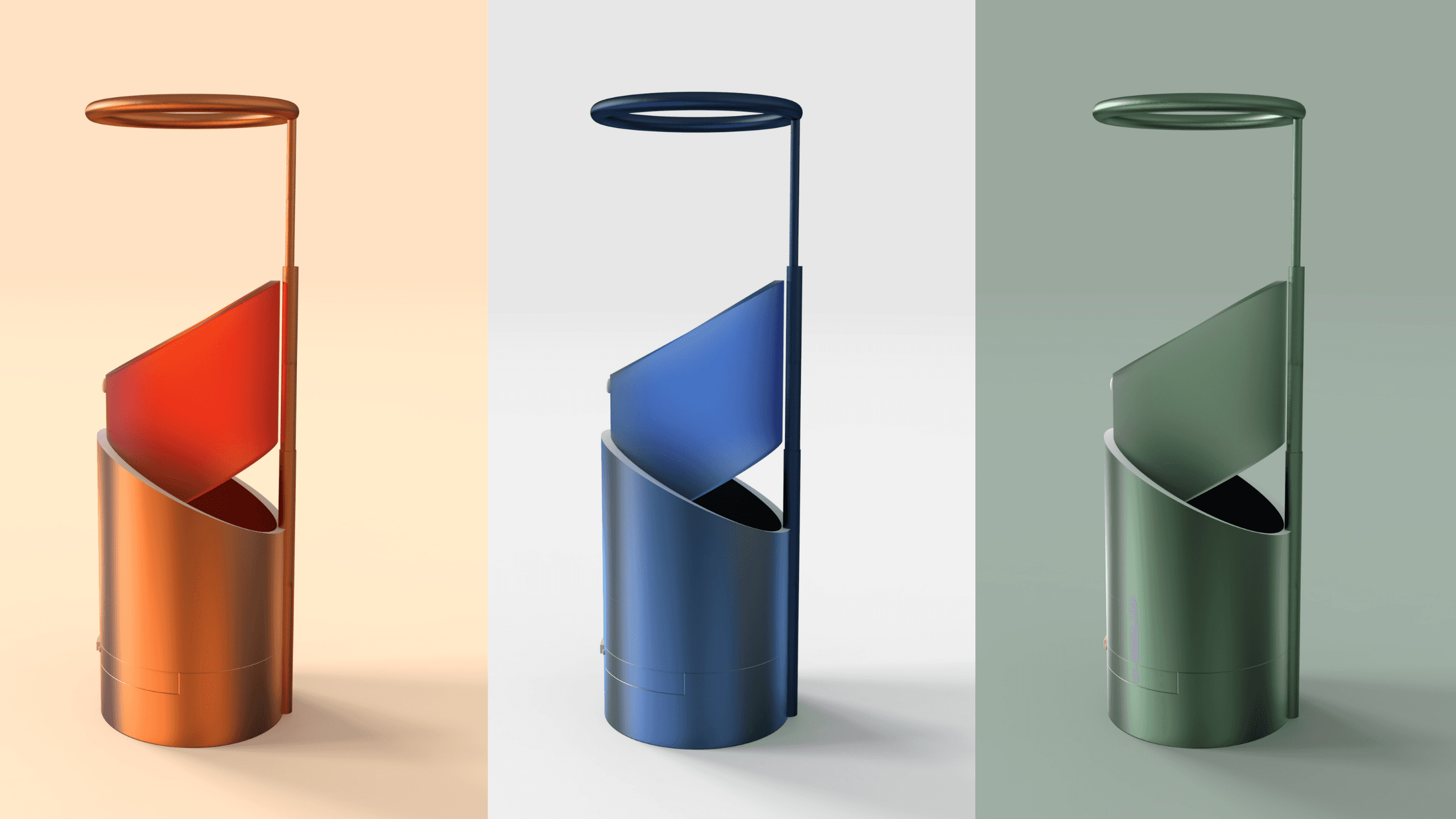 The sculptural cylindrical form provides natural support for long umbrellas, while the adjustable internal platform offers intuitive placement for smaller ones. This design aims to transform an often-overlooked object into a refined aesthetic element that adds a sophisticated modern presence to its environment. Its anodized aluminum and translucent structure offers a sleek, high-performance solution suitable for use in residential entryways, boutique offices, and public interiors