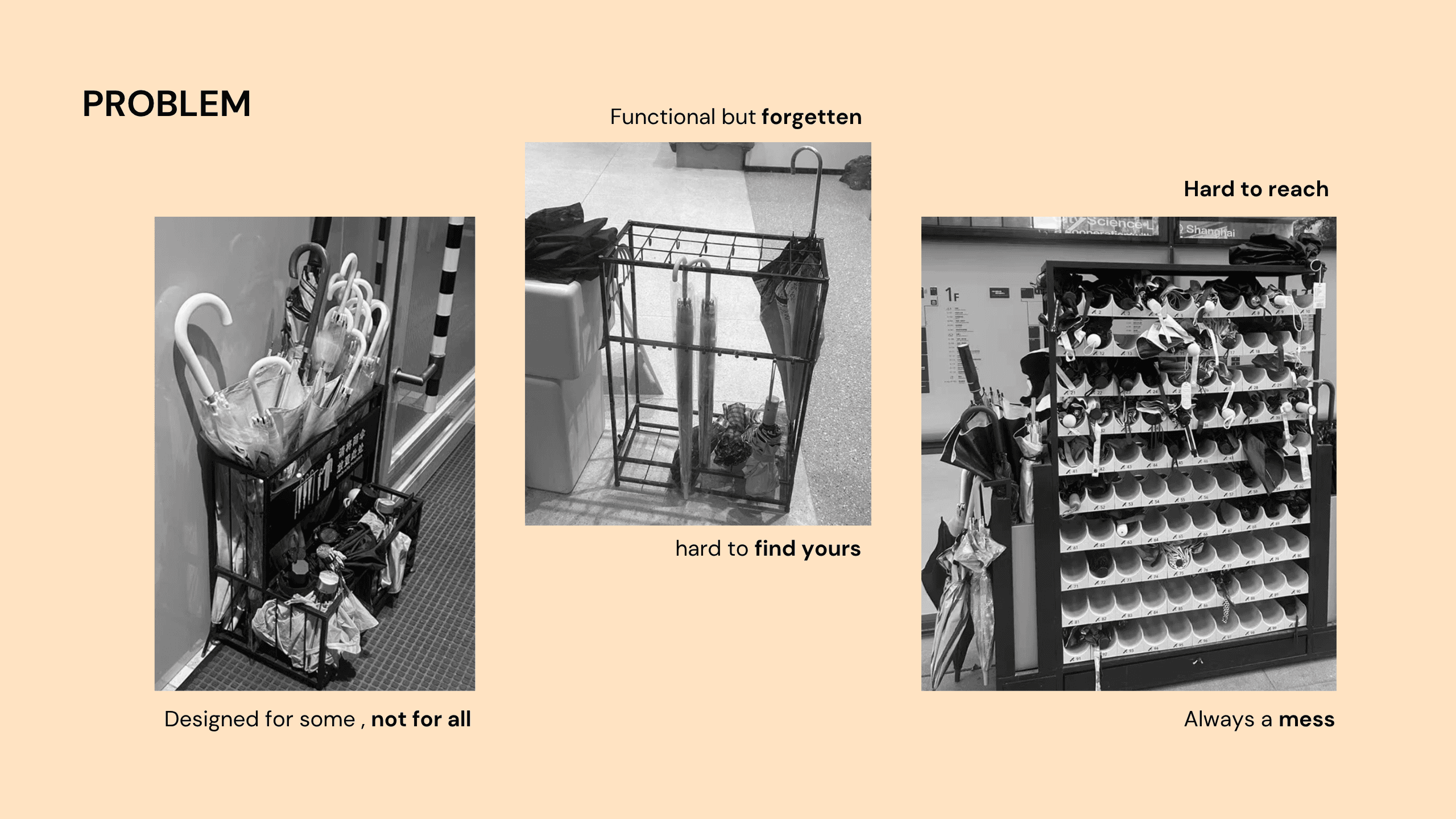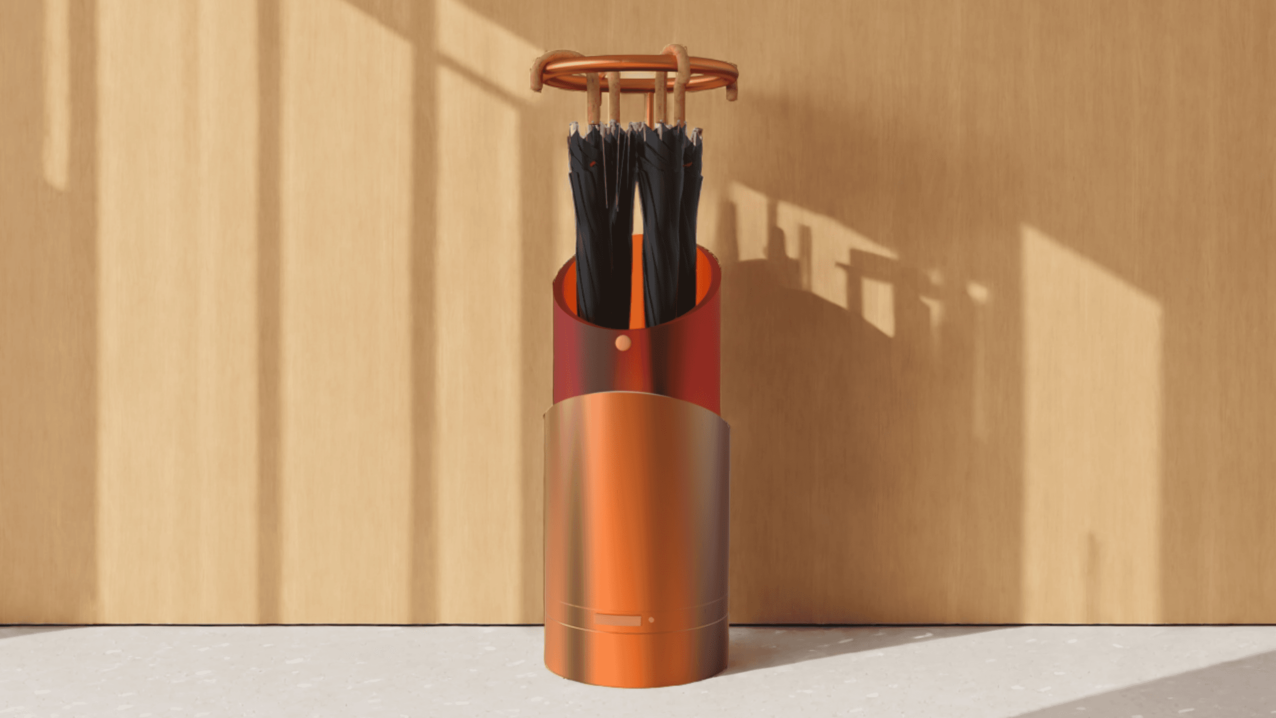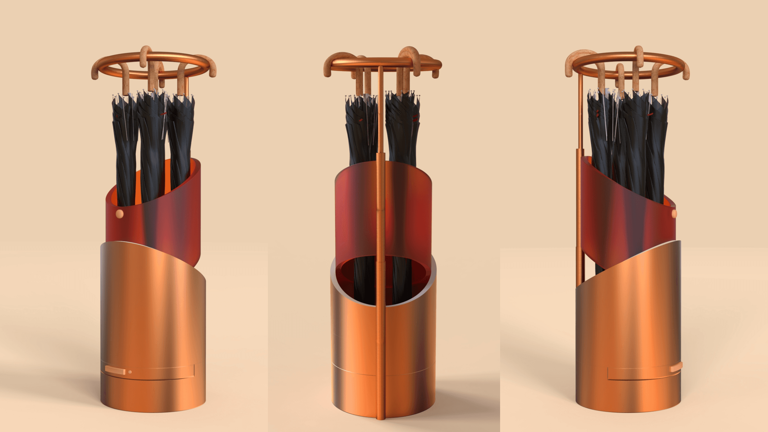 The umbrella stand is typically treated as a purely utilitarian object, existing quietly at the edge of an entryway with little consideration for interaction or experience. This project challenges that assumption by reimagining the umbrella holder as an active, responsive element within everyday space.